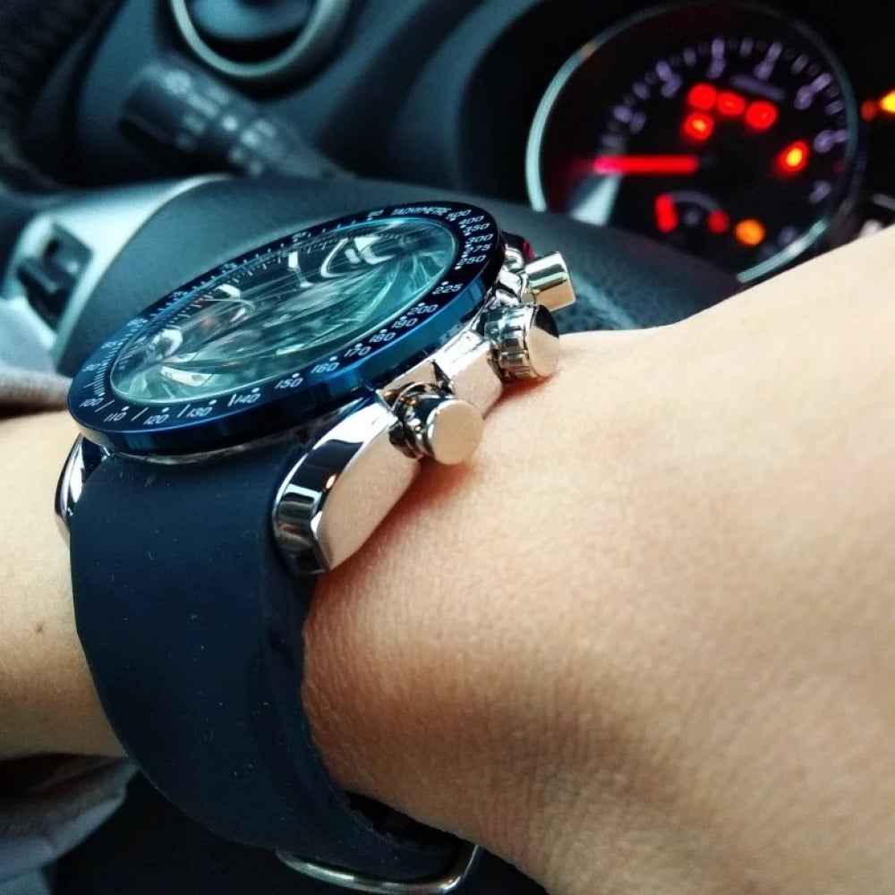 - تجمع الساعة بين الوظائف العملية مثل الكرونوجراف والتقويم، وتصميم عصري يناسب أسلوب الحياة الحديث.