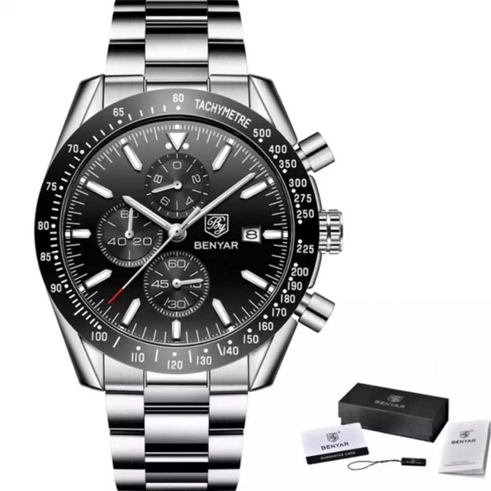 تعد ساعة اليد الفاخرة كرونوغراف BENYAR 5140 مزيجًا ممتازًا من الوظائف والأناقة، مما يجعلها خيارًا مثاليًا للرجل العصري. مثالية للإعدادات غير الرسمية والرسمية، فهي توفر عملية مع وظائف الكرونوغراف والتقويم، مع ضمان الراحة أيضًا بحزامها المطاطي.